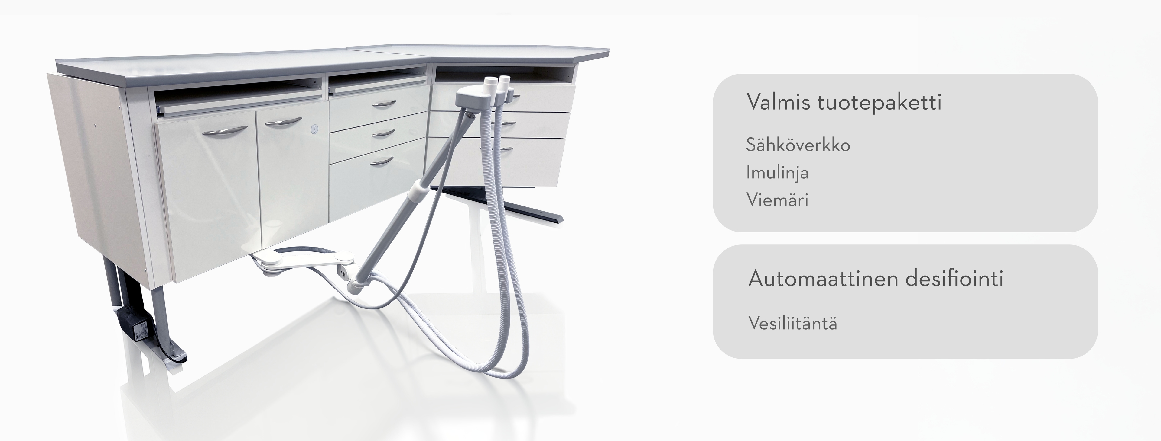 Fimet Itsenäinen kaapistoimu toimii täysin itsenäisesti – siinä imun ohjaus, ja valinnaisesti amalgaamierottelu, sekä imuletkujen ja -järjestelmän desinfiointi, jotka takaavat tasaisen ja luotettavan imutehon