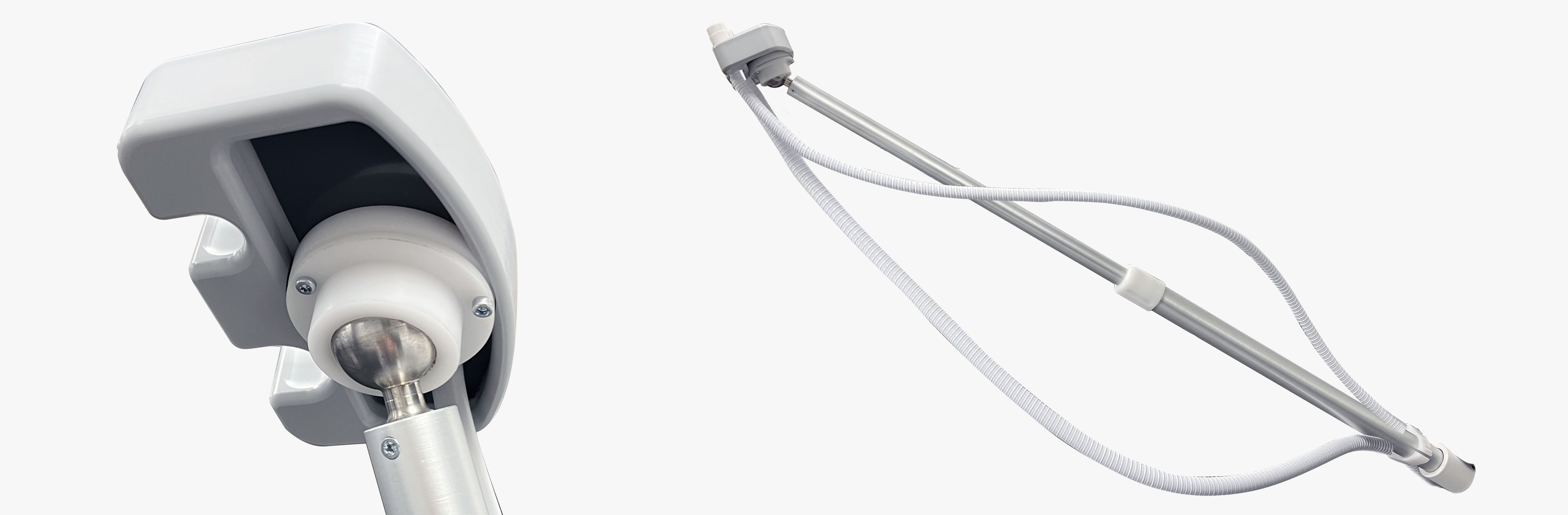 The Fimet Cabinet Suction solves these and many other challenges. Its telescopic suction arm, mounted on a cabinet or sturdy stand, offers excellent reach and user comfort. The Cabinet Suction is available in three configurations: for wet suction systems, for dry suction with an amalgam separator, and as a version with an integrated automatic suction disinfection system.