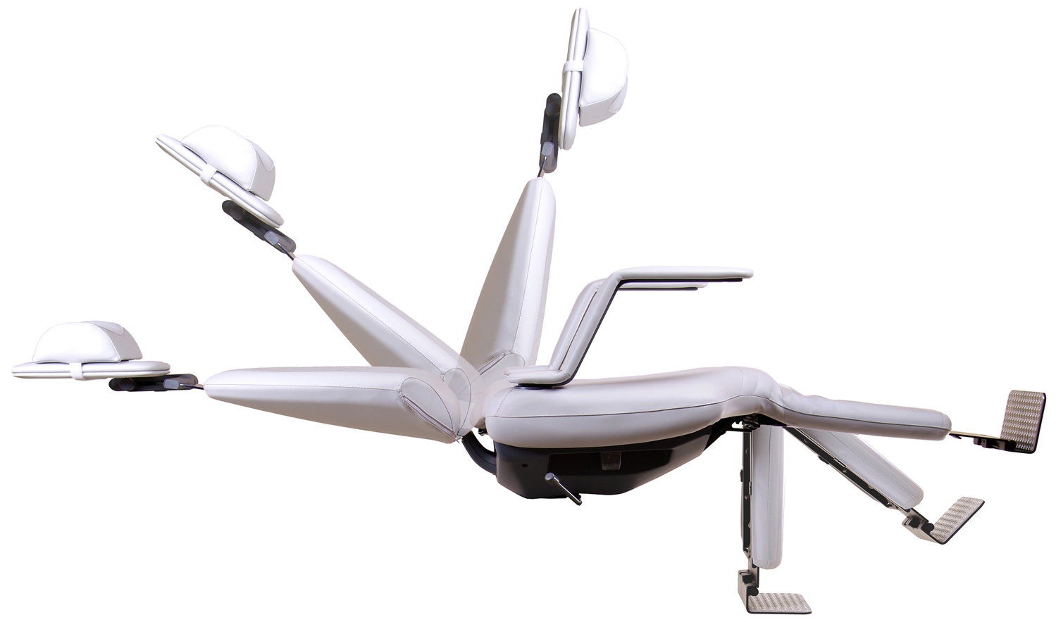 A 24 V safety power lift brings the chair from 46 cm up to 97 cm height, as well as to horizontal position for microscope examinations.