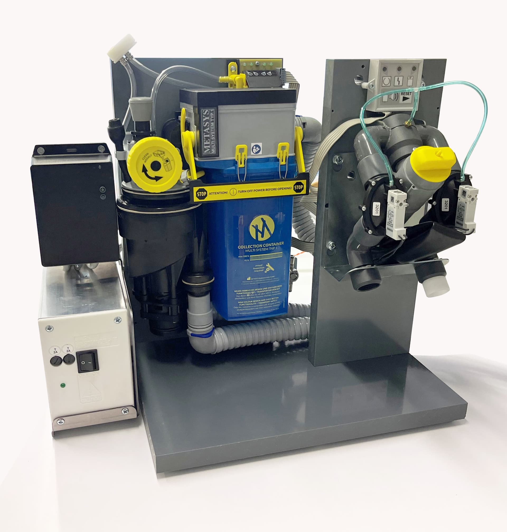 When dentists remove or place amalgam fillings, small particles containing mercury, silver, tin, and copper are released into the wastewater. The amalgam separator captures these particles before the water leaves the Fimet Cabinet Suction or dental unit.